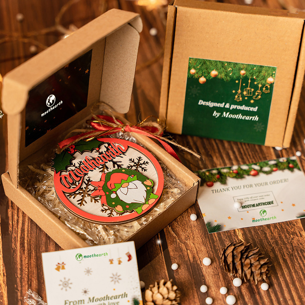 - Each ornament comes with 3 hanger strings: Gold metallic, red ribbon, and jute twine strings.